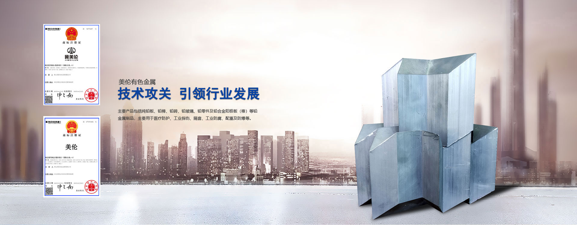 主要產(chǎn)品包括純鉛板、鉛棒、鉛磚、鉛玻璃、鉛零件及鉛合金陽(yáng)極板(棒)等鉛金屬制品。